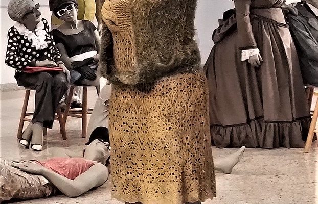 Com curadoria da própria artista e cocuradoria de Samantha Arana, a instalação desafia a dicotomia entre a arte popular e a erudita. Ao posicionar figuras cotidianas — uma cantora, um violonista e diversos transeuntes — no hall do teatro, a obra subverte a sacralidade do espaço museológico e convida o público a ser coautor da cena.